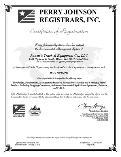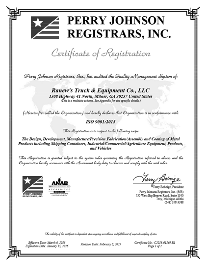 Ranew’s takes immense pride in its ISO 9001:2015 and ISO 14001:2015 certifications, and with its quality assurance personnel, continually audit every phase of production. Ranew’s adheres to the ISO standards to ensure quality management principles that consistently provide its customers with products and services that meet or exceed their expectations.